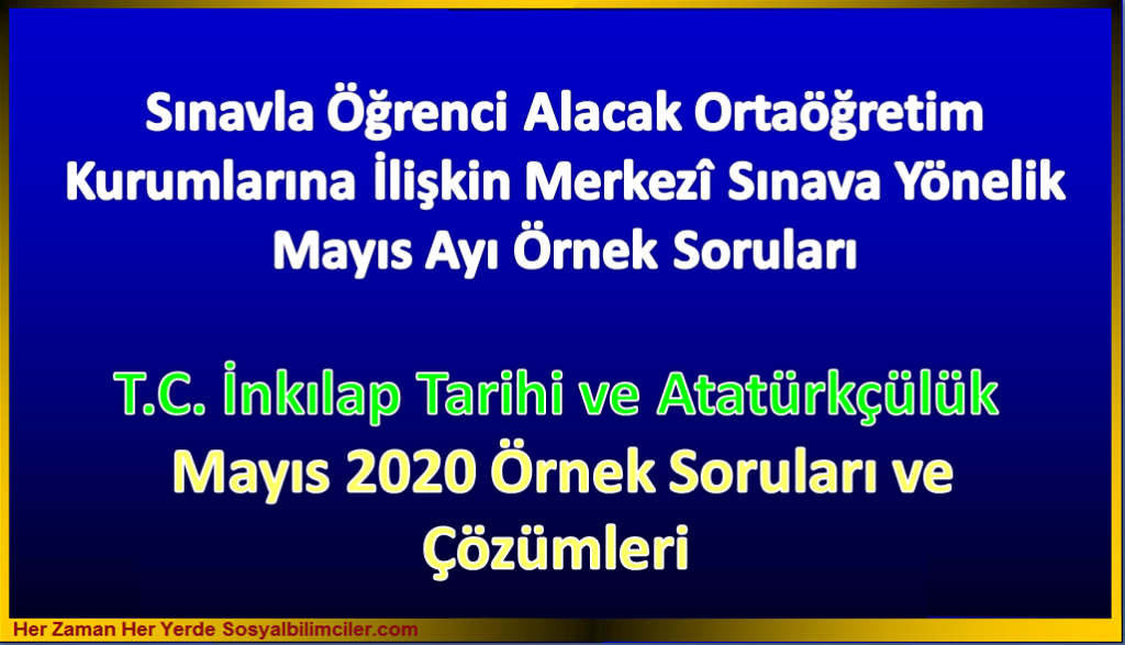 İnkılap Tarihi 8. Sınıf Mayıs 2020 Örnek Sorular Çözümleri SUNUYU TIKLA İNDİR